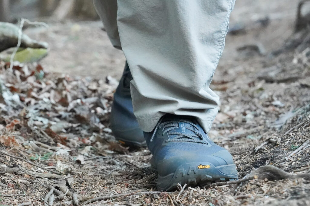 リップストップメッシュのアッパーは通気性が高く快適です。このあたりは歴代のローンピークの良さをしっかりと引き継いでいて、長時間の行動でも蒸れを感じることはありません。汗を留まらせることなく放出してくれ、靴の中は常にストレスフリー。